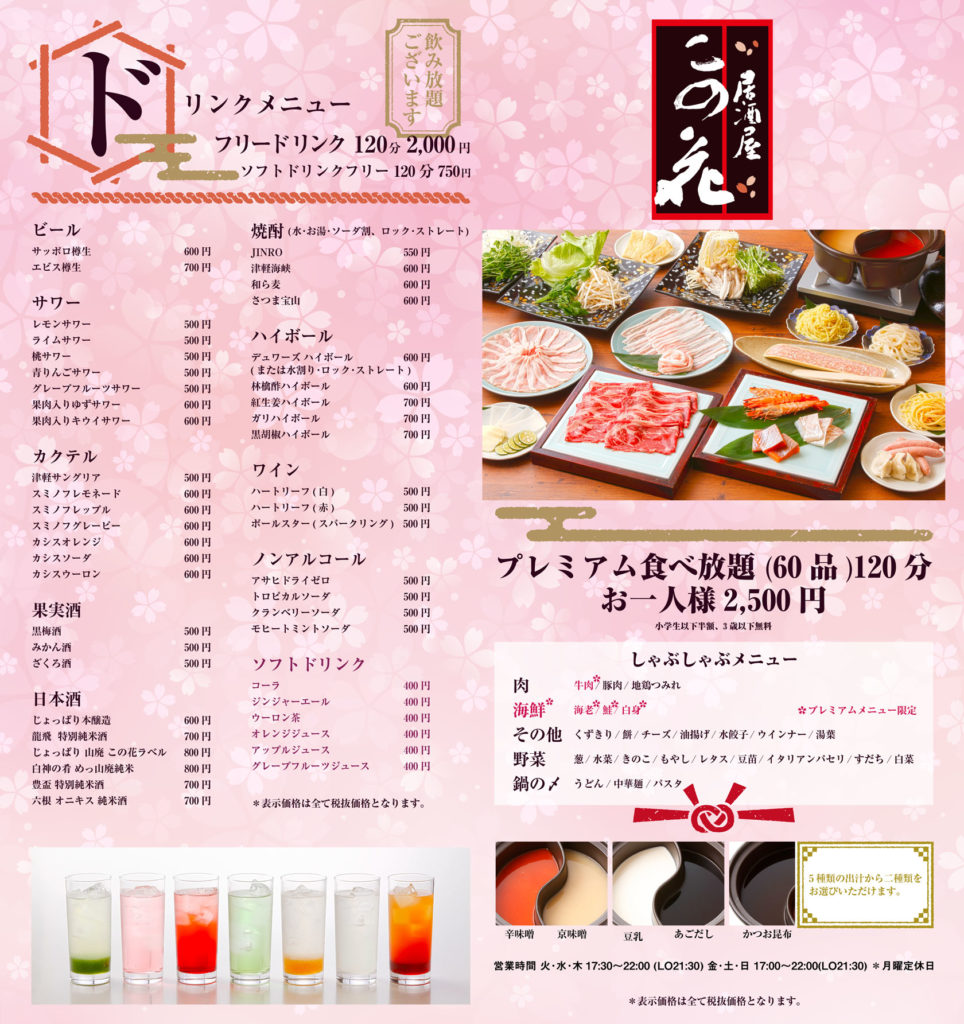 ホテルニューキャッスル 2021年 この花(居酒屋) メニュー表